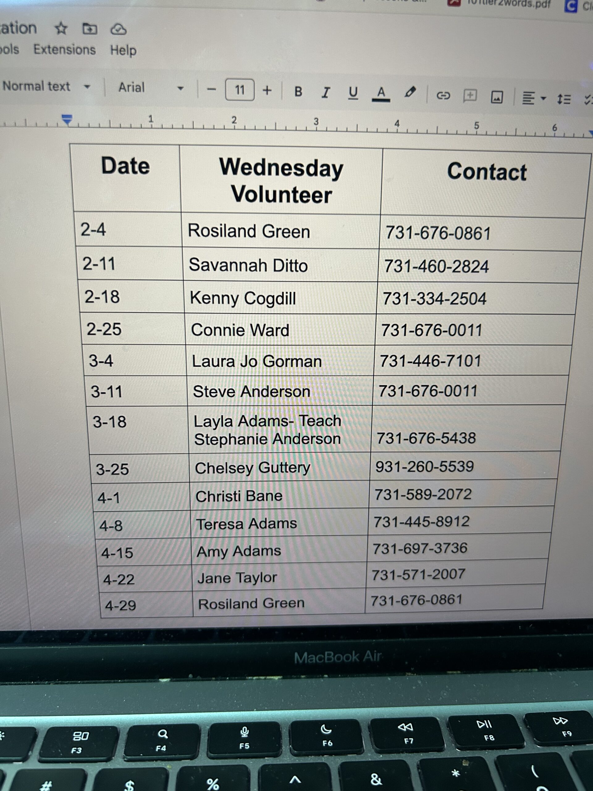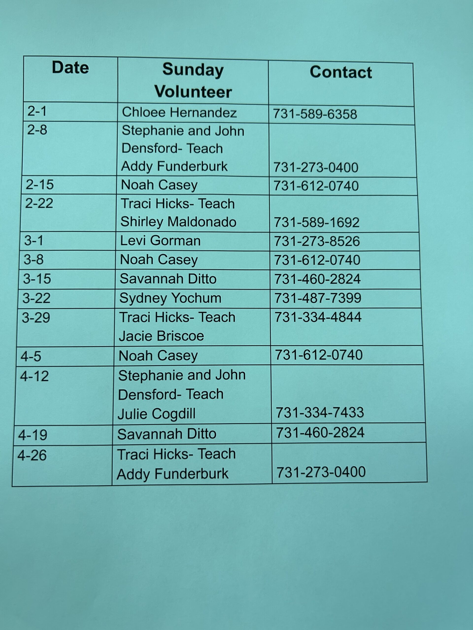 VOLUNTEER SCHEDULES